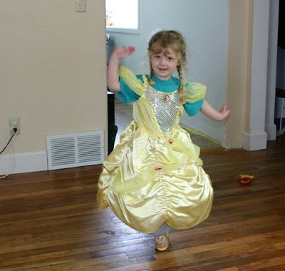 Brit and Savannah watching Strawberry Shortcake. Check out her new princess shoes on the couch. She also got the Pretty Pretty Princess game and a Belle Princess Dress. It was an all princess birthday for our little princess.